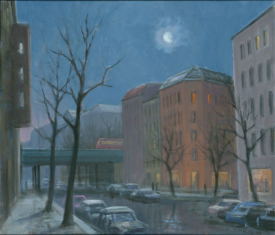 Straße mit Mond, Öl/Leinwand 60x70; 2004s